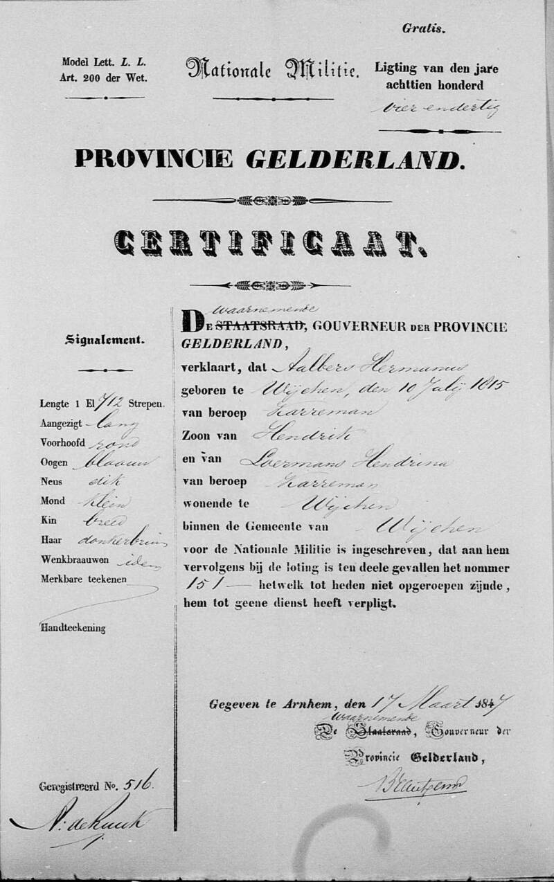 Hermanus was de enige zoon van HENDRIK AALBERTS. In 1711 was Hendrik geboren in Oosterhout. Hij trouwde te Eijmeren (Elst) met Elisabeth Jansen.
